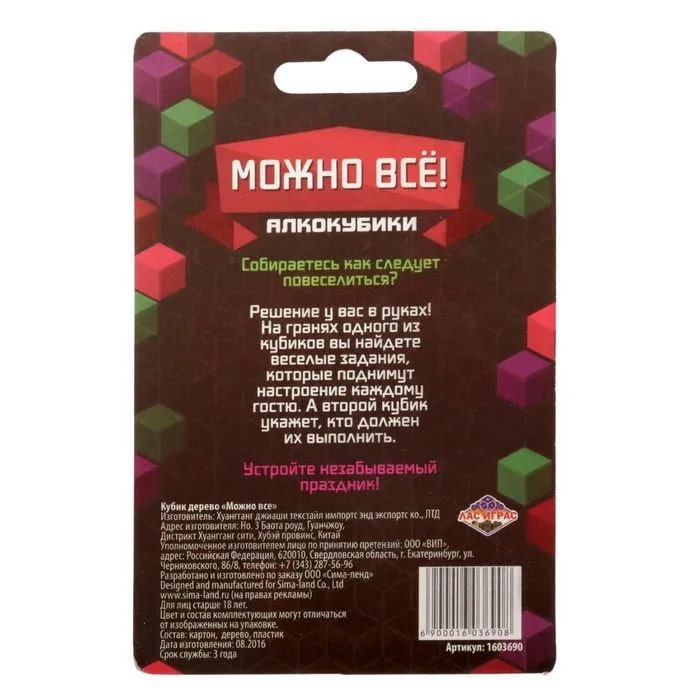 Купить кубик "можно все", алкокубики для принятия решений от 60 руб. с доставкой до пункта выдачи в Кимрах. Интернет магазин ДекаМаркет. Оплата при получении.